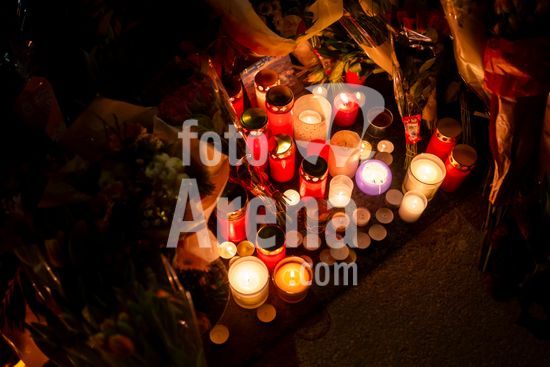 Candles and flowers left in memorial to victims of a deadly fire, outside the Le Constellation bar, in the ski resort town of Crans-Montana, Switzerland, on Friday, Jan. 2, 2026. Investigators said that sparklers attached to bottles of champagne were the likely cause of the fire, leaving 40 people dead and dozens badly burned. (Til B?rgy/The New York Times/Fotoarena)