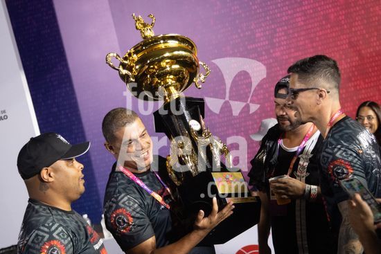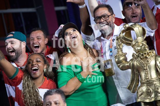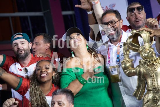 Johannes Lochner and Georg Fleischhauer of Germany celebrate their final run of the 2-man bobsleigh competition during the 2026 Milan Cortina Winter Olympics at the Cortina Sliding Center in Cortina d?Ampezzo, Italy, on Tuesday, Feb. 17, 2026. They won the gold medal in the event. (James Hill/The New York Times/Fotoarena)