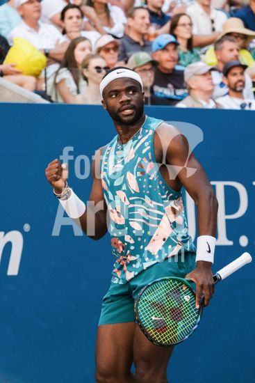 ny040923184606 Frances Tiafoe, of the United States, reacts after scoring a point against Adrian Mannarino, of France, during the third round match of the U.S. Open at the Billie Jean King National Tennis Center in New York on Sept. 1, 2023. Ben Shelton and Frances Tiafoe set for All-American quarterfinal; unseeded Ben Shelton reached the Australian Open quarterfinals this year; 10th-seeded Frances Tiafoe was a U.S. Open semifinalist last year. (Gabriela Bhaskar/The New York Times/Fotoarena)