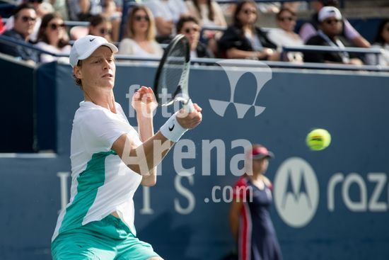 2417764 Italiano JannikSinner enfrenta o Australiano Alex de Minaur na final do torneio de Tênis National Bank Open ATP Masters 1000 realizado na York University em Toronto, Canadá.