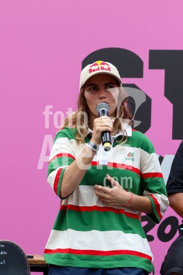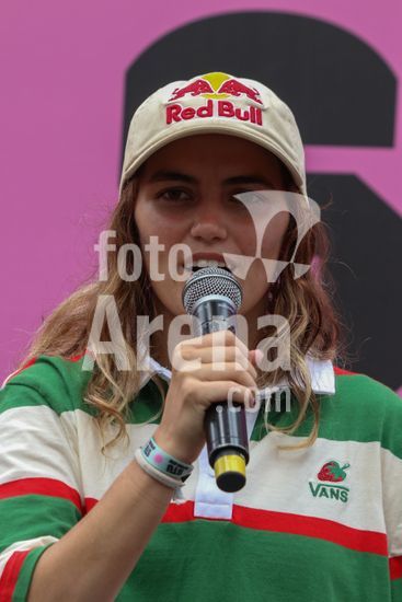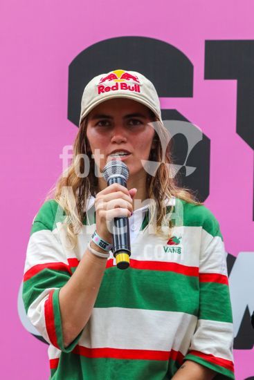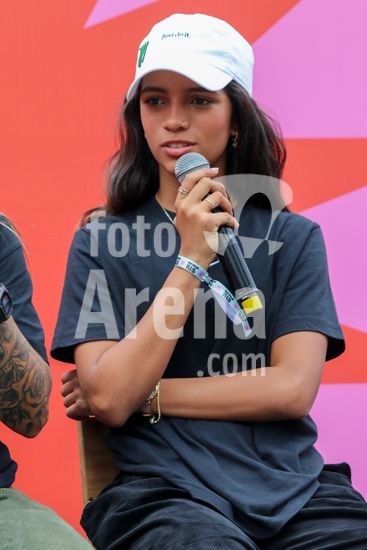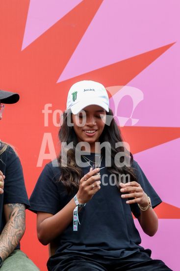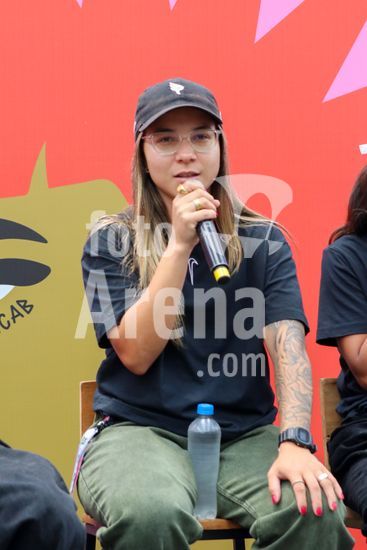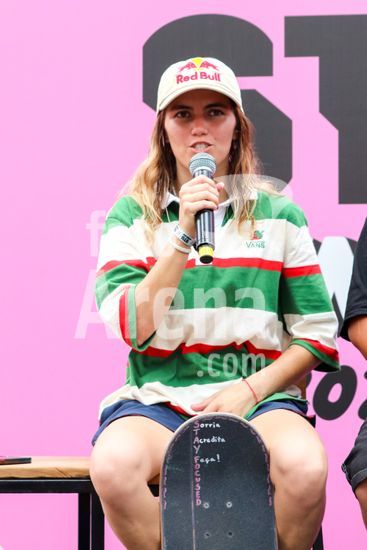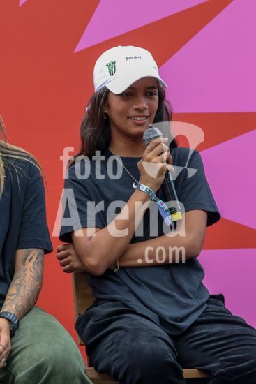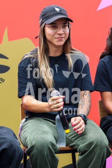 2452803 O Stu Open Rio 2023 realizou na manhã desta quinta-feira (26) uma Coletiva de Imprensa com os principais nomes do skate como Pamela Rosa, Rayssa Leal, Pedro Barros, Luigi Cini, Giovanni vianna, Yndiara Asp, o paraskatista Nando Araújo, e o australiano Keegan Palmer. O evento começa de hoje a domingo (29), na Praça do Uó na Barra da Tijuca. Na foto Yndiara Asp.