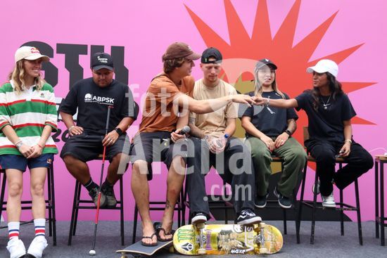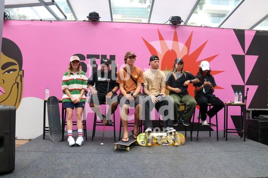 2452817 O Stu Open Rio 2023 realizou na manhã desta quinta-feira (26) uma Coletiva de Imprensa com os principais nomes do skate como Pamela Rosa, Rayssa Leal, Pedro Barros, Luigi Cini, Giovanni vianna, Yndiara Asp, o paraskatista Nando Araújo, e o australiano Keegan Palmer. O evento começa de hoje a domingo (29), na Praça do Uó na Barra da Tijuca.