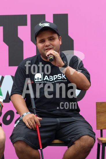 2452802 O Stu Open Rio 2023 realizou na manhã desta quinta-feira (26) uma Coletiva de Imprensa com os principais nomes do skate como Pamela Rosa, Rayssa Leal, Pedro Barros, Luigi Cini, Giovanni vianna, Yndiara Asp, o paraskatista Nando Araújo, e o australiano Keegan Palmer. O evento começa de hoje a domingo (29), na Praça do Uó na Barra da Tijuca. Na foto Nando Araújo.