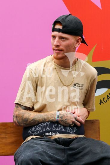 2452801 O Stu Open Rio 2023 realizou na manhã desta quinta-feira (26) uma Coletiva de Imprensa com os principais nomes do skate como Pamela Rosa, Rayssa Leal, Pedro Barros, Luigi Cini, Giovanni vianna, Yndiara Asp, o paraskatista Nando Araújo, e o australiano Keegan Palmer. O evento começa de hoje a domingo (29), na Praça do Uó na Barra da Tijuca. Na foto Giovanni Vianna.