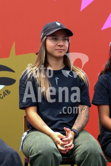 2452774 O Stu Open Rio 2023 realizou na manhã desta quinta-feira (26) uma Coletiva de Imprensa com os principais nomes do skate como Pamela Rosa, Rayssa Leal, Pedro Barros, Luigi Cini, Giovanni vianna, Yndiara Asp, o paraskatista Nando Araújo, e o australiano Keegan Palmer. O evento começa de hoje a domingo (29), na Praça do Uó na Barra da Tijuca. Na foto Pamela Rosa.