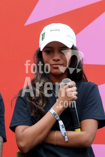 2452799 O Stu Open Rio 2023 realizou na manhã desta quinta-feira (26) uma Coletiva de Imprensa com os principais nomes do skate como Pamela Rosa, Rayssa Leal, Pedro Barros, Luigi Cini, Giovanni vianna, Yndiara Asp, o paraskatista Nando Araújo, e o australiano Keegan Palmer. O evento começa de hoje a domingo (29), na Praça do Uó na Barra da Tijuca. Na foto Rayssa Leal.