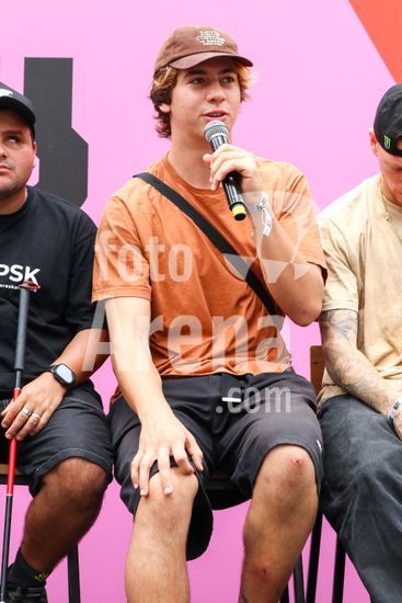 2452777 O Stu Open Rio 2023 realizou na manhã desta quinta-feira (26) uma Coletiva de Imprensa com os principais nomes do skate como Pamela Rosa, Rayssa Leal, Pedro Barros, Luigi Cini, Giovanni vianna, Yndiara Asp, o paraskatista Nando Araújo, e o australiano Keegan Palmer. O evento começa de hoje a domingo (29), na Praça do Uó na Barra da Tijuca.Na foto Giovanni Vianna.