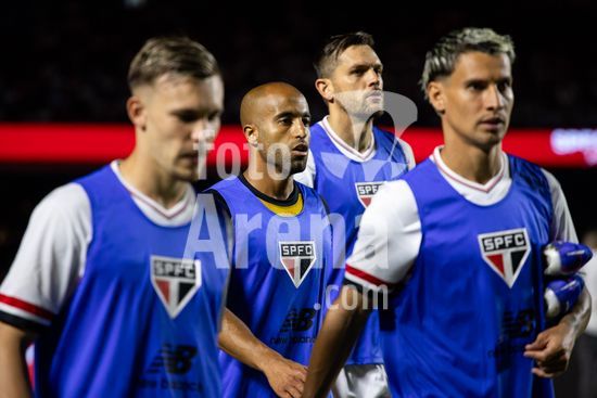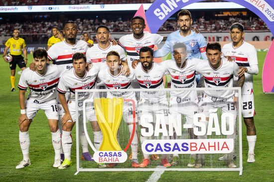 2877071 Elenco do São Paulo durante a partida entre São Paulo e Santos, válida pela 6ª rodada do Paulistão, realizada na noite deste sábado (31) no MorumBIS em São Paulo, SP.