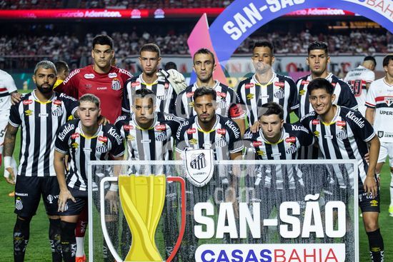 2877070 Elenco do Santos durante a partida entre São Paulo e Santos, válida pela 6ª rodada do Paulistão, realizada na noite deste sábado (31) no MorumBIS em São Paulo, SP.