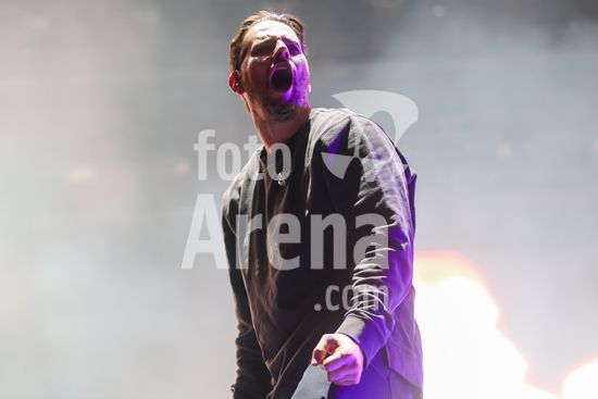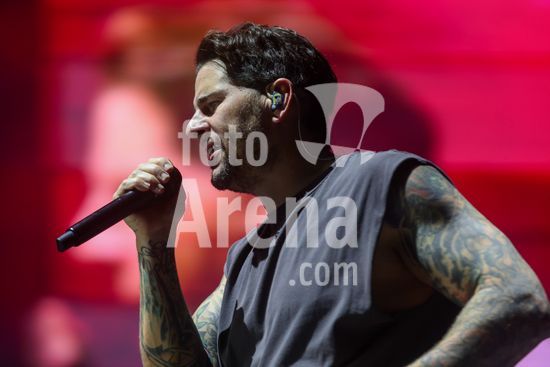 2877137 O vocalista M. Shadows durante show da banda Avenged Sevenfold em São Paulo realizado no Allianz Parque na noite deste sábado (31).