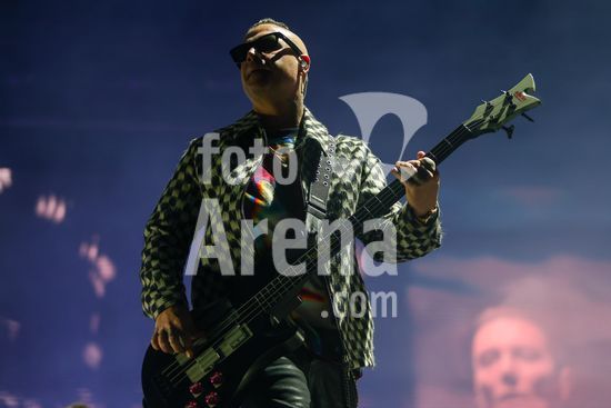 2877139 O baixista Johnny Christ durante show da banda Avenged Sevenfold em São Paulo realizado no Allianz Parque na noite deste sábado (31).