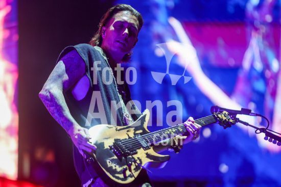 2877124 O guitarrista Synyster Gates durante show da banda Avenged Sevenfold em São Paulo realizado no Allianz Parque na noite deste sábado (31).