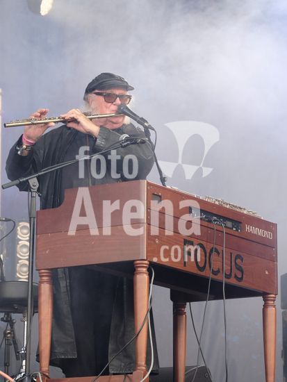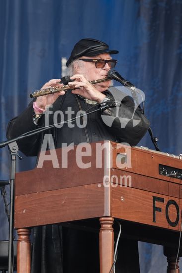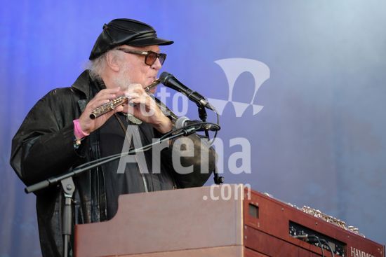 55222718 Thijs van Leer Hammond, organ flute and vocalist with Dutch progressive rock band Focus, best known for their hits "Hocus Pocus", "House of The King" and "Sylvia" performing live on stage at Fairport's Cropredy Convention. Focus formed in The Netherlands in the 1970s. The current line up - Thijs van Leer - Hammond-organ -flute and vocals, Pierre van der Linden - drums, Menno Gootjes- guitar, Udo Pannekeet - bass. Photo Credit: Dawn Fletcher-Park / SOPA Images/ Sipa USA/ Fotoarena