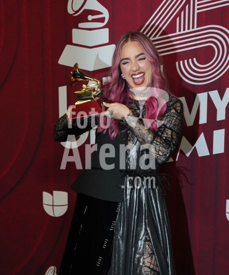 57777588 MIAMI, FLORIDA - NOVEMBER 14: Ela Taubert, winner of the Best New Artist award poses in the press room during the 25th Latin GRAMMY Awards at Kaseya Center on November 14, 2024 in Miami, Florida. Photo Credit: Alberto E. Tamargo/ Sipa USA/ Fotoarena