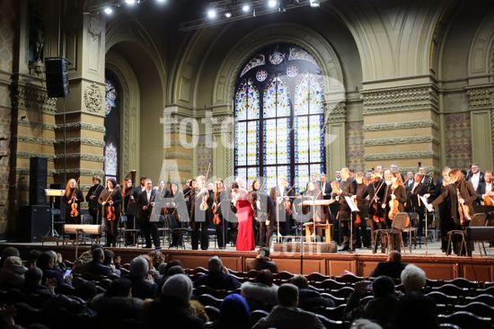 59494935 Maryna Naimytenko (soprano) seen during a performance at the Odessa Philharmonic Theater. The National Odessa Philharmonic Orchestra presented the concert program "Love The Best". The leading soloists of the Odessa Opera Bohdan Panchenko (baritone) and Maryna Naimytenko (soprano) sang. The conductor was Honored Artist of Ukraine Chernetski Igor. This is the first concert in the large hall of the Odessa Philharmonic Theater after its renovation following the missile attack on Odessa on 31.01.2025. Photo Credit: Viacheslav Onyshchenko / SOPA Images/ Sipa USA/ Fotoarena