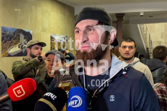 60092231 RUSSIA, MAKHACHKALA - MARCH 11, 2025: UFC Light Heavyweight Champion, Russian mixed martial artist Magomed Ankalaev talks to journalists at a city airport. Video grab. Best quality available. Gyanzhevi Gadzhibalayev/TASS/Sipa USA