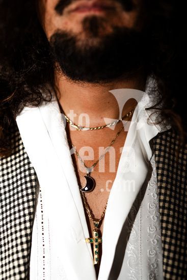 20240918_zna_c181_715 September 18, 2024, Madrid, Spain: Detail of the necklaces of flamenco singer Israel Fernandez poses for Europa Press, at the Corral de la Moreria, on September 18, 2024, in Madrid (Spain). Israel Fernandez is a Spanish flamenco singer, composer and musician of gypsy origin. He has been awarded an Odeon Award for Best Flamenco Album for 'Amor' (2021) and nominated for a Latin Grammy Award for Best Flamenco Album in 2021. Now the artist presents his new album 'Yo Voy A Perder El Sentío'...SEPTEMBER 18;2024..Mateo Lanzuela / Europa Press..09/18/2024 (Credit Image: © Mateo Lanzuela/Contacto/Zuma Press/Fotoarena)