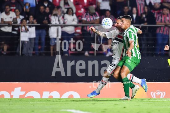 2929399 André Silva do São Paulo e Rodrigo Sam do Juventude disputando a bola, durante partida entre São Paulo FC x Juventude, jogo de ida da quinta fase da Copa do Brasil 2026, nesta terça feira (21), no Morumbis, SP.