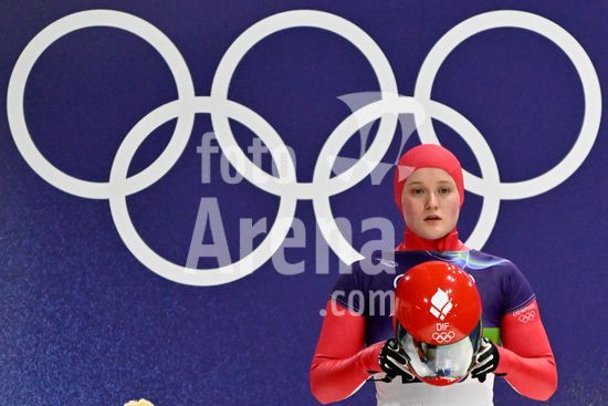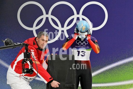 2883435 Cortina d'Ampezzo, Italia, 13 de fevereiro de 2026. Anna Fernstaedt, da Republica Tcheca, antes das baterias 1 e 2 do skeleton feminino dos Jogos Olimpicos de Inverno de 2026 em Cortina d'Ampezzo, Italia. (Igor Kupljenik/SPP)