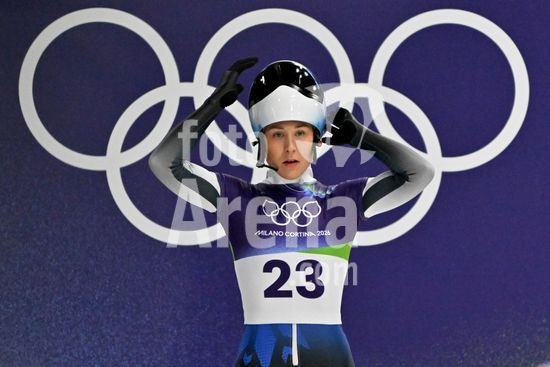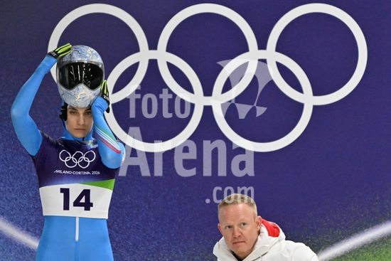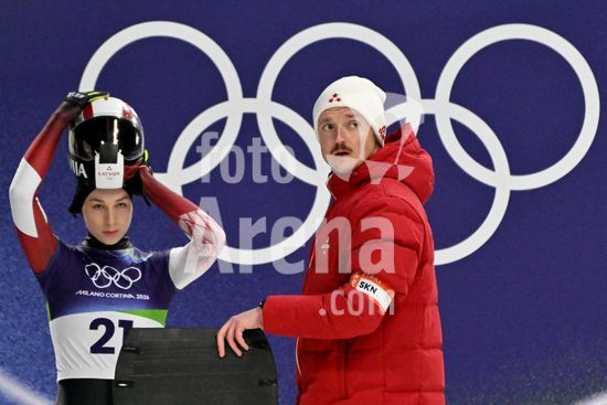 2883383 Cortina d'Ampezzo, Italia, 13 de fevereiro de 2026. Marta Andzane, da Letonia, antes das baterias 1 e 2 do skeleton feminino dos Jogos Olimpicos de Inverno de 2026 em Cortina d'Ampezzo, Italia. (Igor Kupljenik/SPP)
