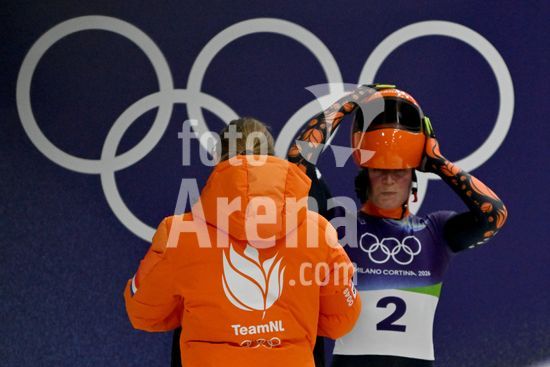 2883368 Cortina d'Ampezzo, Italia, 13 de fevereiro de 2026. Kimberley Bos, da Holanda, antes das baterias 1 e 2 do skeleton feminino dos Jogos Olimpicos de Inverno de 2026 em Cortina d'Ampezzo, Italia. (Igor Kupljenik/SPP)
