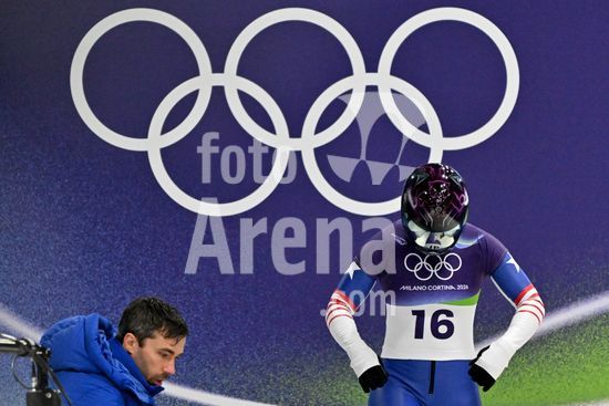 2883358 Cortina d'Ampezzo, Italia, 13 de fevereiro de 2026. Kelly Curtis, dos Estados Unidos da America, antes das baterias 1 e 2 do skeleton feminino dos Jogos Olimpicos de Inverno de 2026 em Cortina d'Ampezzo, Italia. (Igor Kupljenik/SPP)