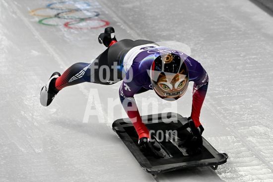 2883377 Cortina d'Ampezzo, Italia, 13 de fevereiro de 2026. Sujung Hong, da Republica da Coreia, em acao durante as baterias 1 e 2 do skeleton feminino dos Jogos Olimpicos de Inverno de 2026 em Cortina d'Ampezzo, Italia. (Igor Kupljenik/SPP)