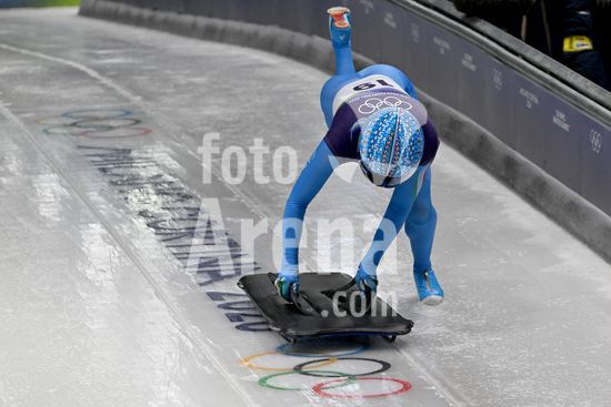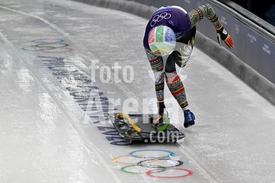 2883362 Cortina d'Ampezzo, Italia, 13 de fevereiro de 2026. Nicole Burger, da Africa do Sul, em acao durante as baterias 1 e 2 do skeleton feminino dos Jogos Olimpicos de Inverno de 2026 em Cortina d'Ampezzo, Italia. (Igor Kupljenik/SPP)