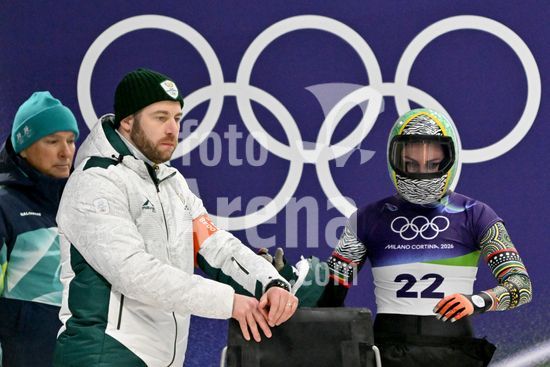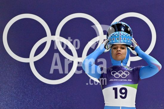 2883385 Cortina d'Ampezzo, Italia, 13 de fevereiro de 2026. Nicole Burger, da Africa do Sul, antes das baterias 1 e 2 do skeleton feminino dos Jogos Olimpicos de Inverno de 2026 em Cortina d'Ampezzo, Italia. (Igor Kupljenik/SPP)