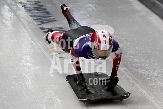 2883382 Cortina d Ampezzo, Italia, 13 de fevereiro de 2026. Marta Andzane da Letonia em acao durante as corridas Skeleton Women's heat 1 e 2 dos Jogos Olimpicos de Inverno de 2026 em Cortina d Ampezzo, Italia. (Igor Kupljenik/SPP)