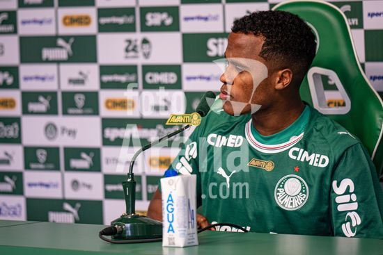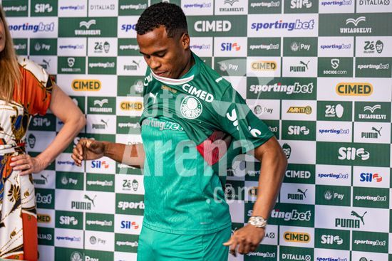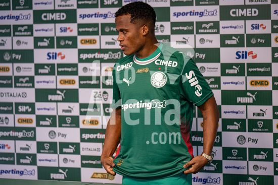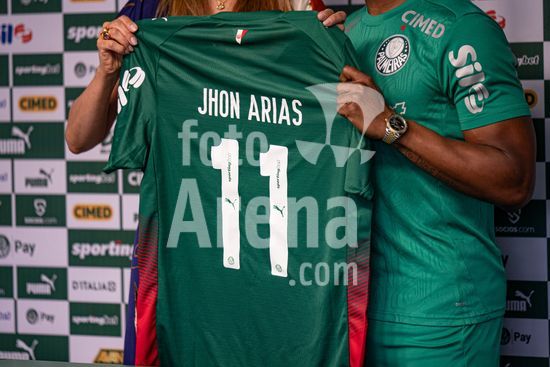 2883418 (...) durante uma conferencia de imprensa para apresentar Jhon Arias, a nova contratacao do Palmeiras vinda do Wolverhampton Wanderers, da Inglaterra. (Riquelve Nata/SPP)