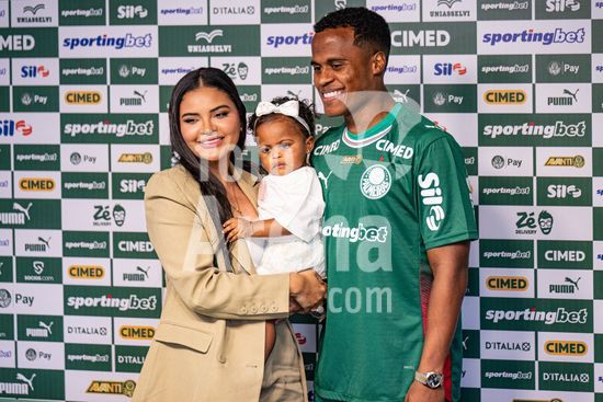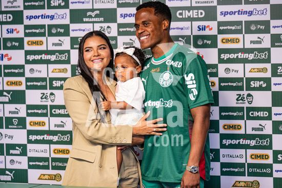 2883417 Jhon Arias do Palmeiras e familia durante entrevista coletiva de apresentacao de Jhon Arias, nova contratacao do Palmeiras vindo do Wolverhampton Wanderers da Inglaterra. (Riquelve Nata/SPP)