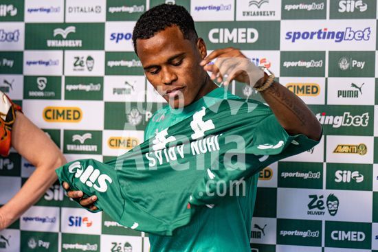 2883423 Jhon Arias, do Palmeiras, durante entrevista coletiva de apresentacao de Jhon Arias, nova contratacao do Palmeiras vindo do Wolverhampton Wanderers, da Inglaterra. (Riquelve Nata/SPP)