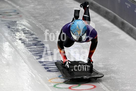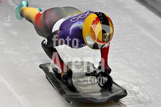 2883454 Cortina d'Ampezzo, Italia, 13 de fevereiro de 2026. Susanne Kreher, da Alemanha, em acao durante as baterias 1 e 2 do skeleton feminino dos Jogos Olimpicos de Inverno de 2026 em Cortina d'Ampezzo, Italia. (Igor Kupljenik/SPP)