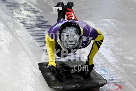 2883384 Cortina d'Ampezzo, Italia, 13 de fevereiro de 2026. Nicole Burger, da Africa do Sul, em acao durante as baterias 1 e 2 do skeleton feminino dos Jogos Olimpicos de Inverno de 2026 em Cortina d'Ampezzo, Italia. (Igor Kupljenik/SPP)
