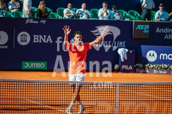 2883453 Buenos Aires, Argentina. 13 de fevereiro de 2026. Francisco Cerúndolo (ARG) em ação durante a partida válida pelas quartas de final do Argentina Open 2026.