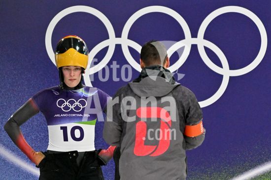 2883457 Cortina d'Ampezzo, Italia, 13 de fevereiro de 2026. Hannah Neise, da Alemanha, antes das baterias 1 e 2 do skeleton feminino dos Jogos Olimpicos de Inverno de 2026 em Cortina d'Ampezzo, Italia. (Igor Kupljenik/SPP)