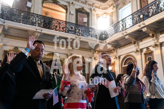 ny130123182305 Attendees at a naturalization ceremony on National Religious Freedom Day say the Pledge of Allegiance, at the Eisenhower Executive Office Building near the White House, in Washington on Friday, Jan. 13, 2023. (Sarah Silbiger/The New York Times/Fotoarena)