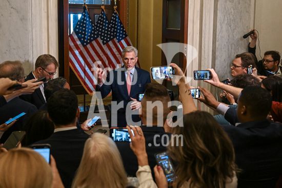 ny060623214106 FILE ? House Speaker Kevin McCarthy (R-Calif.) speaks to the press upon returning to the U.S. Capitol building after meeting with U.S. President Joe Biden at the White House, in Washington, on May 22, 2023. A group of hard-line Republicans hijacked the House floor on Tuesday, June 6, 2023, grinding legislative business to a halt for several hours in a striking display of ire at McCarthy for making a deal with President Biden to suspend the debt limit and banding together with Democrats to muscle it to passage. (Kenny Holston/The New York Times/Fotoarena)