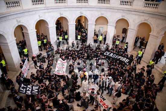 ny301023192306 FILE ? Demonstrators calling for a ceasefire in the conflict between Hamas and Israel stage a sit in, inside the Cannon House Office building on Capitol Hill in Washington, on Wednesday, Oct. 18, 2023. The Biden administration has become more critical of Israel?s response to the Hamas attacks, a shift that U.S. officials attribute to the humanitarian crisis in Gaza. (Al Drago/The New York Times/Fotoarena)