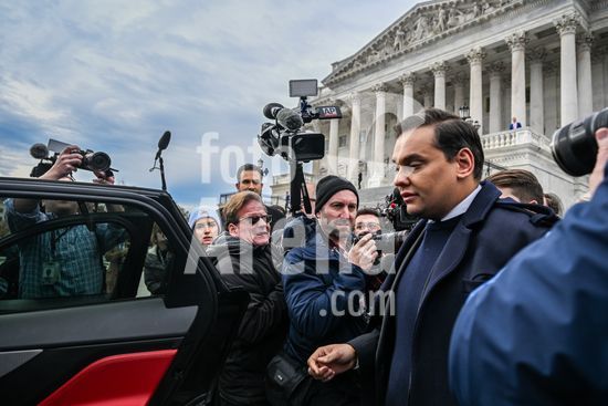 ny011223132107 George Santos, the New York Republican facing federal fraud charges, is surrounded by reporters outside the U.S. Capitol building after being expelled from Congress following a bipartisan vote by his peers, in Washington on Friday, Dec. 1, 2023. The move consigned Santos, who over the course of his short political career invented ties to the Holocaust, Sept. 11 and the Pulse nightclub shooting in Orlando, to a genuine place in history: He is the first person to be expelled from the House without first being convicted of a federal crime or supporting the Confederacy. (Kenny Holston/The New York Times/Fotoarena)