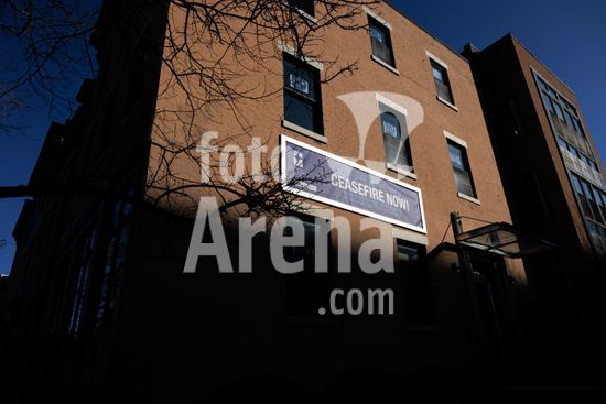 ny160224155007 FILE Ñ The Friends Committee on National Legislation, across the street from the Hart Senate Office Building, displays a sign reading ÒCeasefire Now!Ó, in Washington on Feb. 5, 2024. The Friends Committee, a Quaker lobbying group, has been pushing in Washington for cease-fire, going up against more powerful and better funded groups backing Israel. (Anna Rose Layden/The New York Times/Fotoarena)