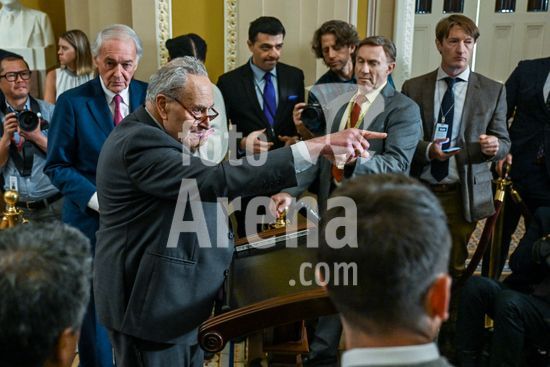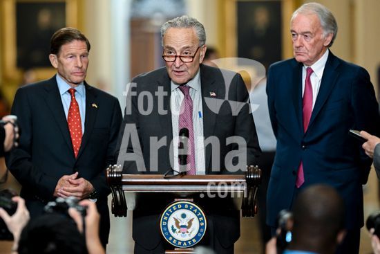 ny300724235011 Senate Majority Leader Chuck Schumer (D-N.Y.) speaks during a weekly press conference with Senators Ed Markey (D-Mass.), right, and Richard Blumenthal (D-Conn.), left, at the Capitol building in Washington, on July 30, 2024. (Kenny Holston/The New York Times/Fotoarena)