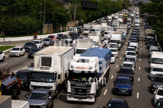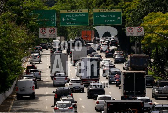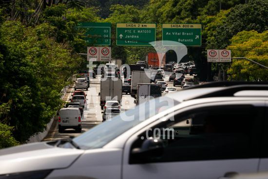2841717 Trânsito lento na marginal Pinheiros, altura da Ponte Cidade Universitária na zona oeste de São Paulo, sentido Interlagos, na manhã desta quarta-feira (20).