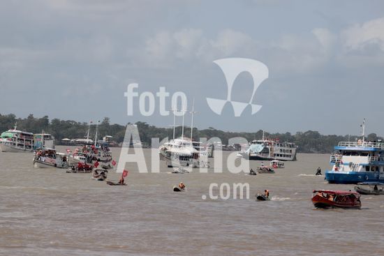 2841726 Cúpula dos Povos realiza barqueata no rio Guamá, na orla da Universidade do Pará (UFPA), para fazer reivindicações relacionadas ao combate a crise climática, tema apresentado na COP 30.
