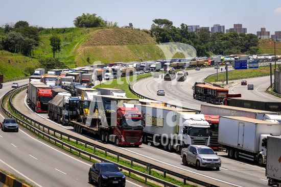 2841798 Rodoanel Mário Covas foi interditado na manhã desta quarta-feira (12) após ameaça de bomba na altura de Itapecerica da Serra. Um caminhão atravessado bloqueou totalmente a pista sentido Presidente Dutra. Motoristas enfrentaram mais de 40 km de congestionamento e cerca de 5 horas de paralisação até a liberação da via. Na foto, veículos parados do Rodoanel altura do km 20 sentido Dutra.