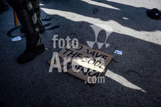 ny141125170012 A protest sign lies on the pavement during a demonstration outside the ICE detention facility in Broadview, Ill., on Friday, Nov. 14, 2025. After clergy were denied entry to deliver Holy Communion to detainees inside, protesters pushed past the barricades and clashed with police. (Jamie Kelter Davis/The New York Times/Fotoarena)