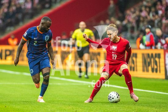 2843033 Skoras e Geertruida durante Polônia x Holanda realizada no Estadio Nacional de Varsóvia em Varsóvia, VA.