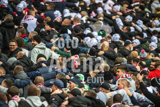 2843036 Torcida celebra de costas para o campo durante Polônia x Holanda realizada no Estadio Nacional de Varsóvia em Varsóvia, VA.