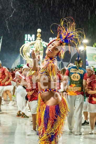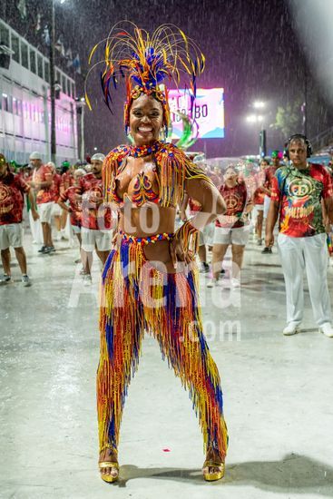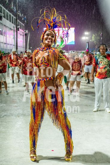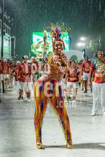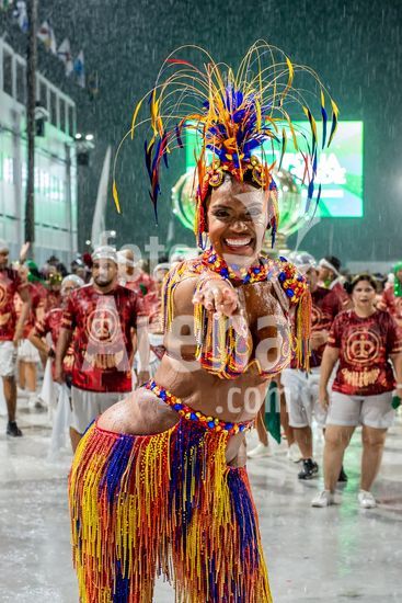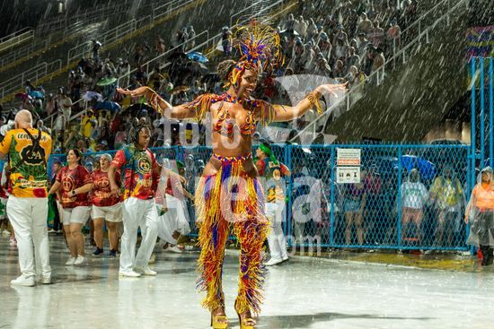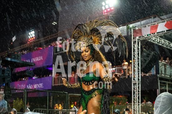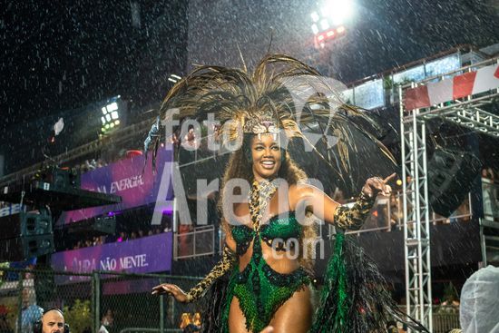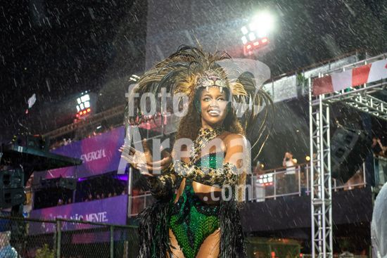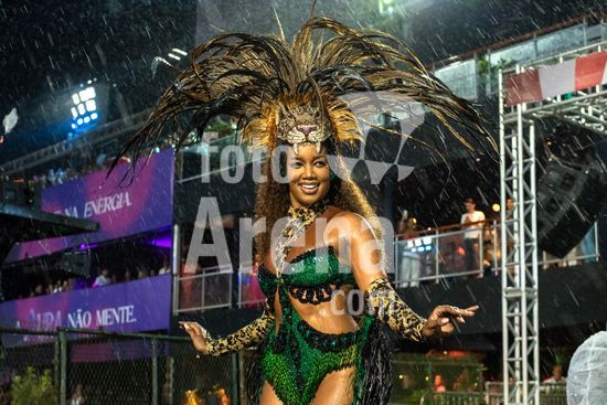 2878234 Cantora Iza, Rainha de bateria da Imperatriz Leopoldinense nos ensaios técnicos do Rio Carnaval 2026 durante chuva forte na Marquês de Sapucaí neste domingo (01).
